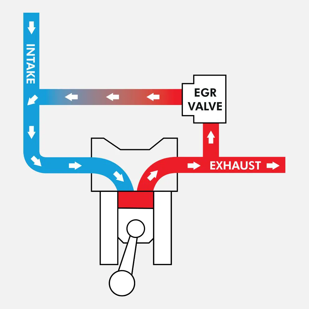 NOx emissions are produced when combustion temperatures exceed 2500°F, causing nitrogen and oxygen to react. The EGR valve recirculates a controlled amount of exhaust gas back into the combustion process, diluting the air-fuel mixture. This lowers combustion temperatures, helping to reduce NOx emissions.